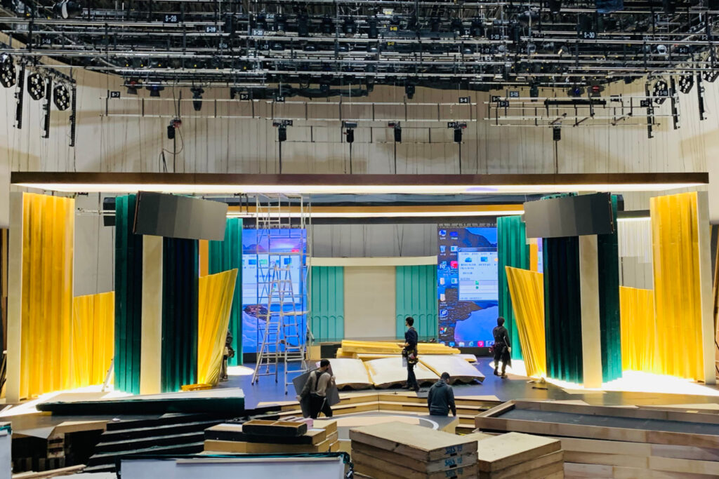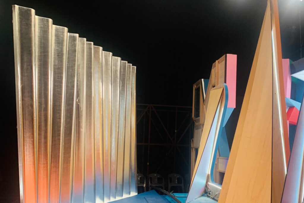 스튜디오 무대 벽면 비비드 페브릭 오브제