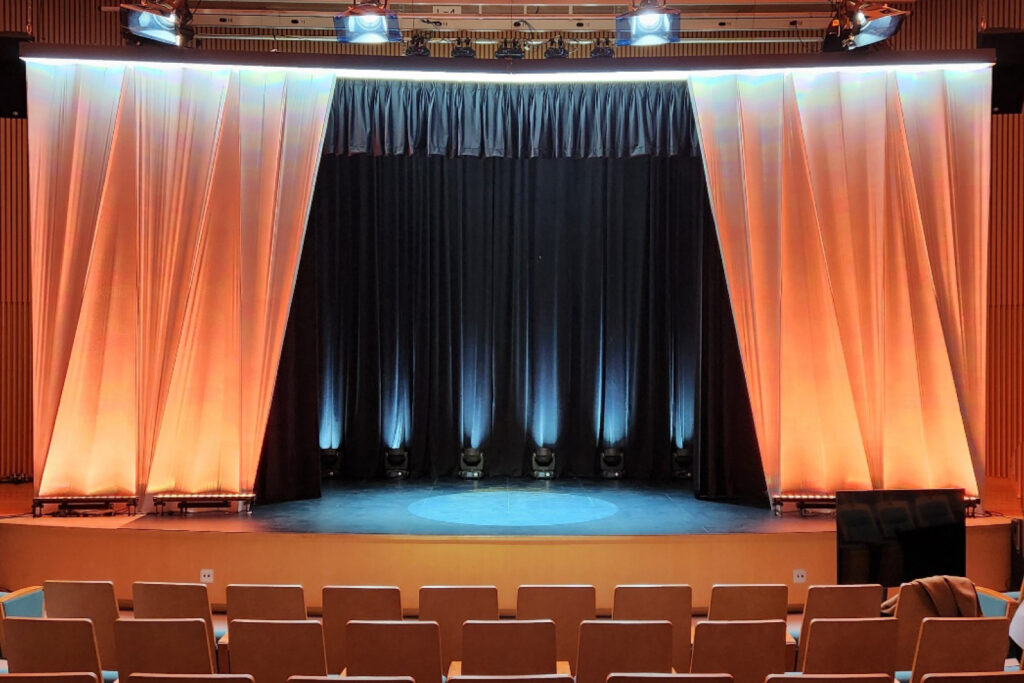 스튜디오 무대 뒤 실버 페브릭 오브제
